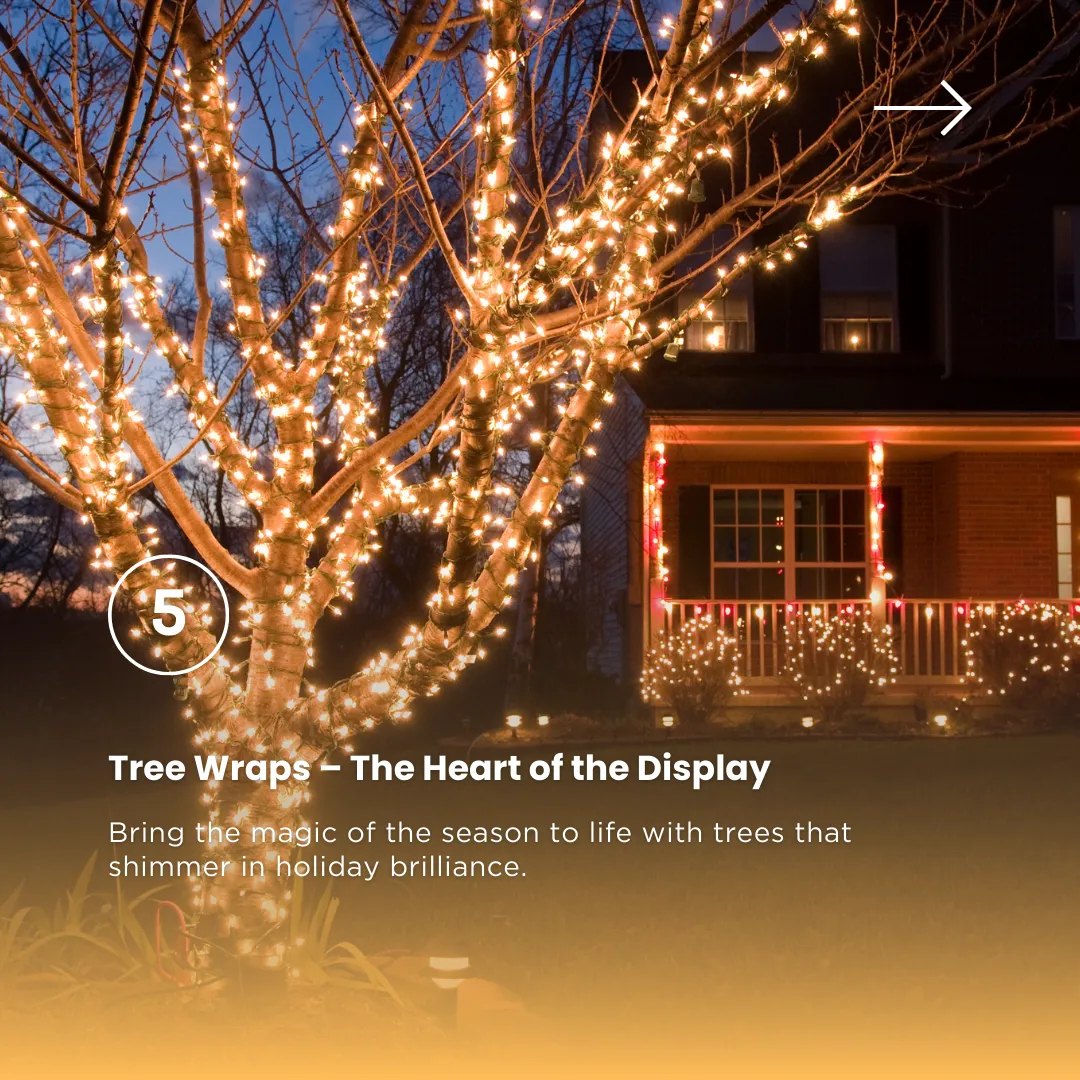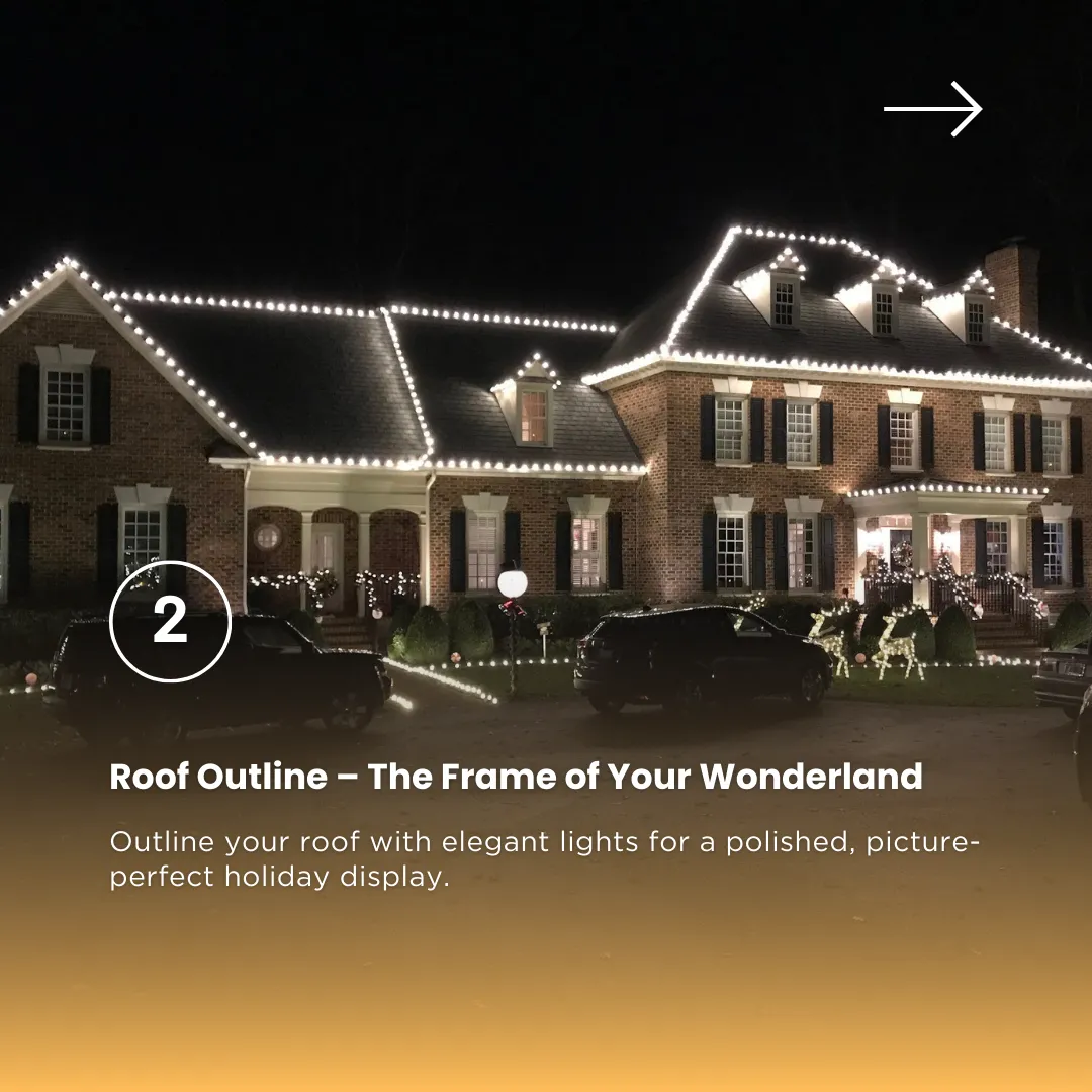 From elegant roof outlines to sparkling trees and festive wreaths, our team handles everything from design to installation, removal, and storage—so all you have to do is enjoy the view.